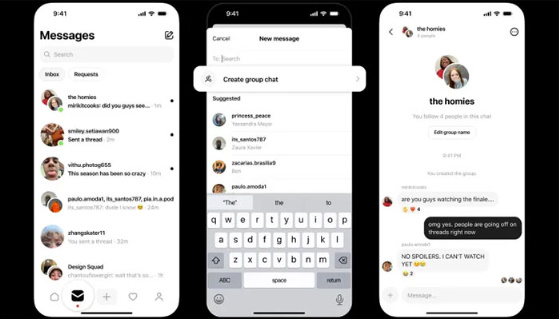 میٹا کے مطابق تھریڈز صارفین ایک نئے میسج کے ذریعے گروپ چیٹ کو تشکیل دے سکتے ہیں۔